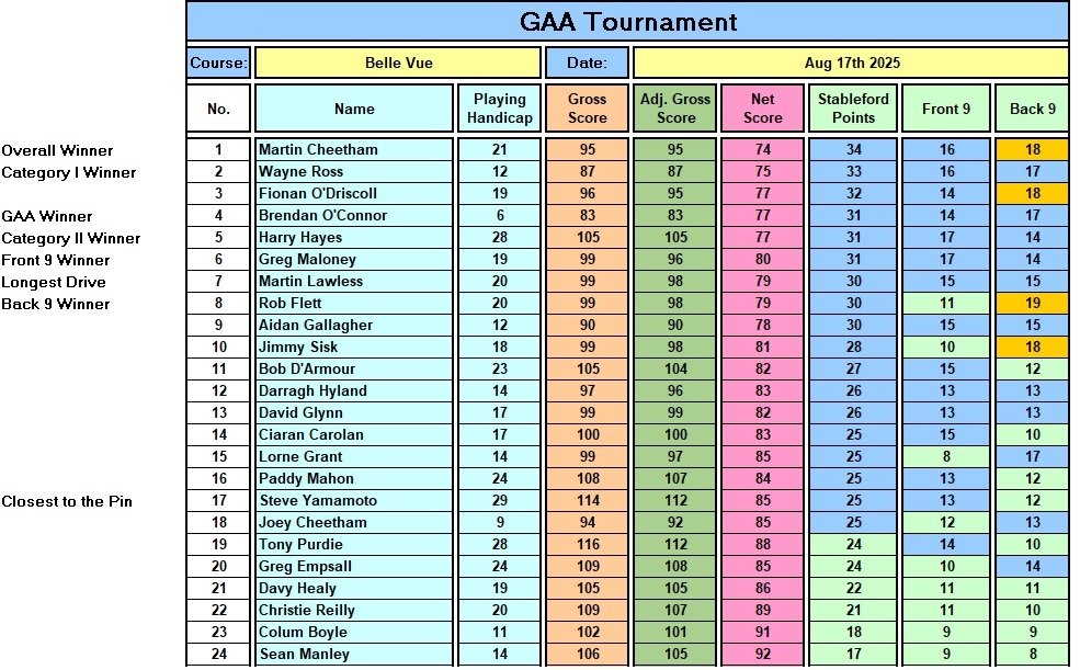 GAA Tournament - Results